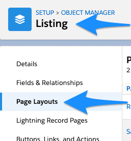 Return to Object Manager and go to the Listing Object and select Page Layouts: