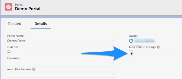 1. Add the "Auto Publish Listing" field to the Portal Layout: