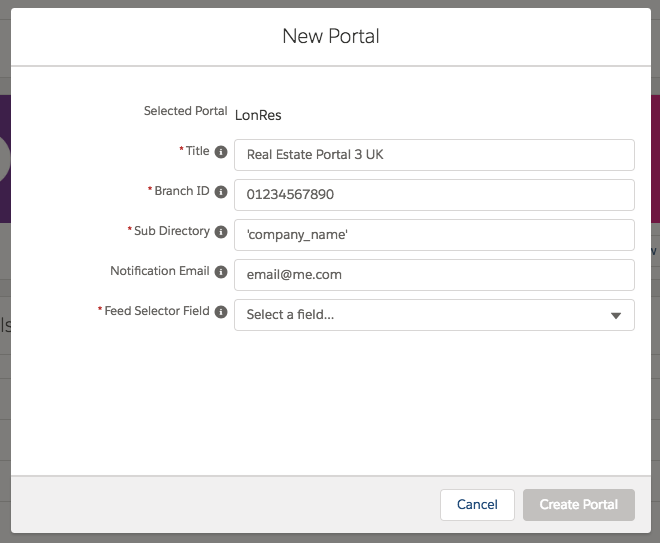 - Once field data has been entered, click Create Portal.