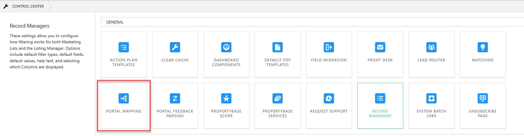 When it comes to Portal Syndication, everything happens in the Control Center. To create a new portal connection (or edit an existing one) navigate to the Control Center and then open Portal Mapping.