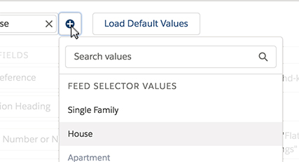 - To add a feed value, click the plus icon and select from the available fields.