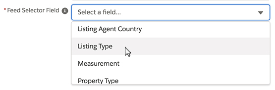 When a portal contains multiple feeds, Propertybase needs a way to know which Listings should go to which feed. This is accomplished through feed values. What values are available is determined by the "feed selector field", which is selected in the settings menu.